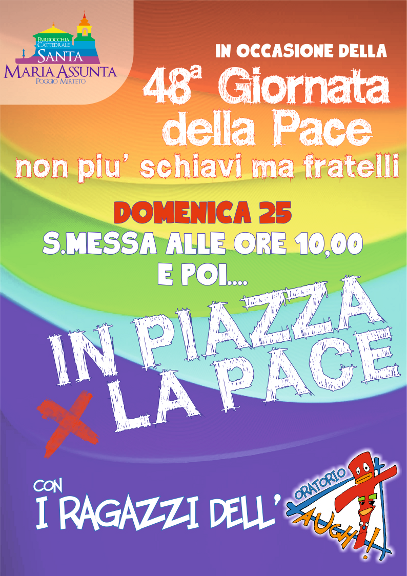 Dopo la Celebrazione Eucaristica siamo tutti invitati in piazza per una Marcia di Pace e per giochi e bans organizzati dall’Oratorio Augh!