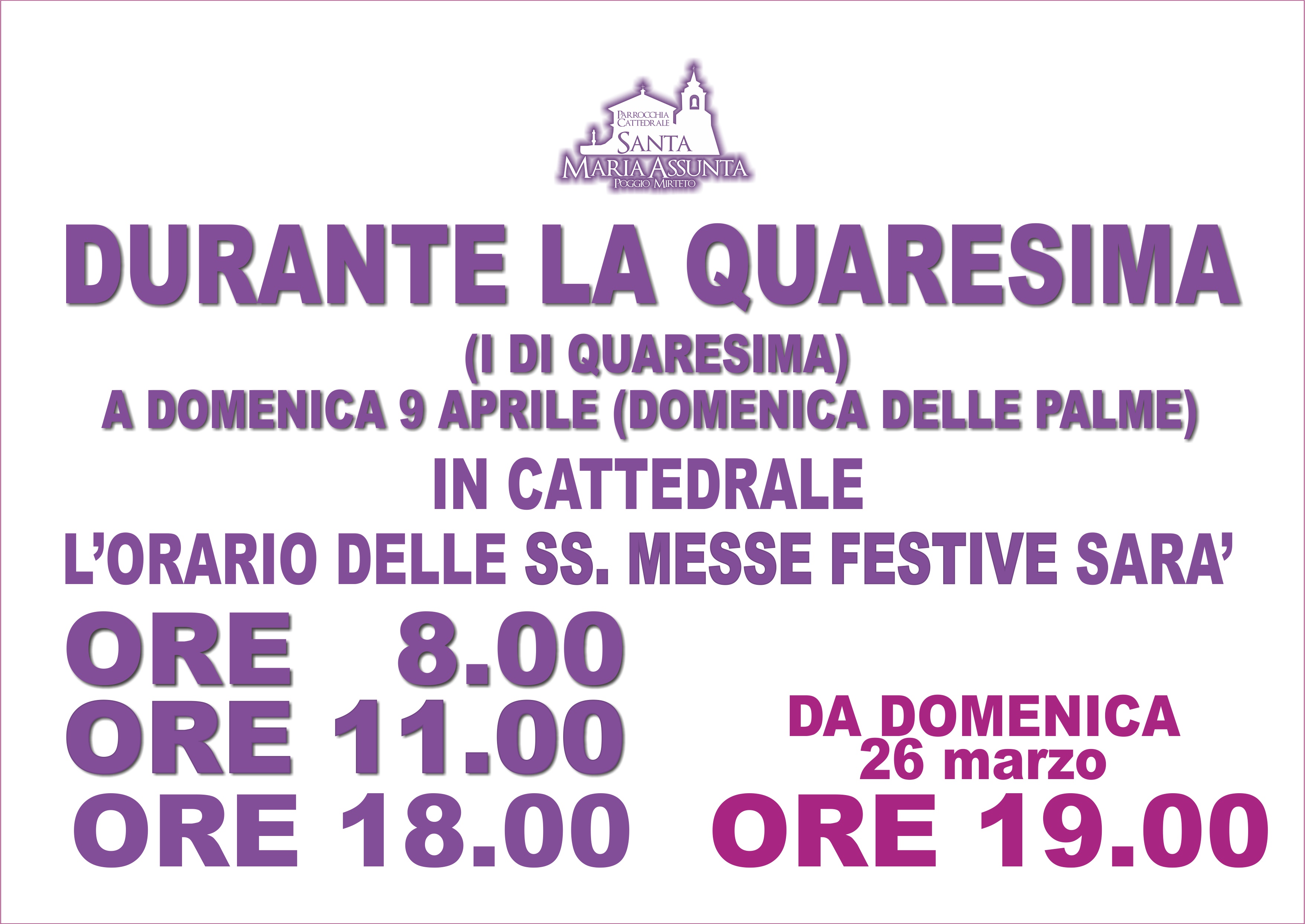 Parrocchia Cattedrale Santa Maria Assunta - Poggio Mirteto > Uncategorized > ORARIO SS. MESSE IN CATTEDRALE