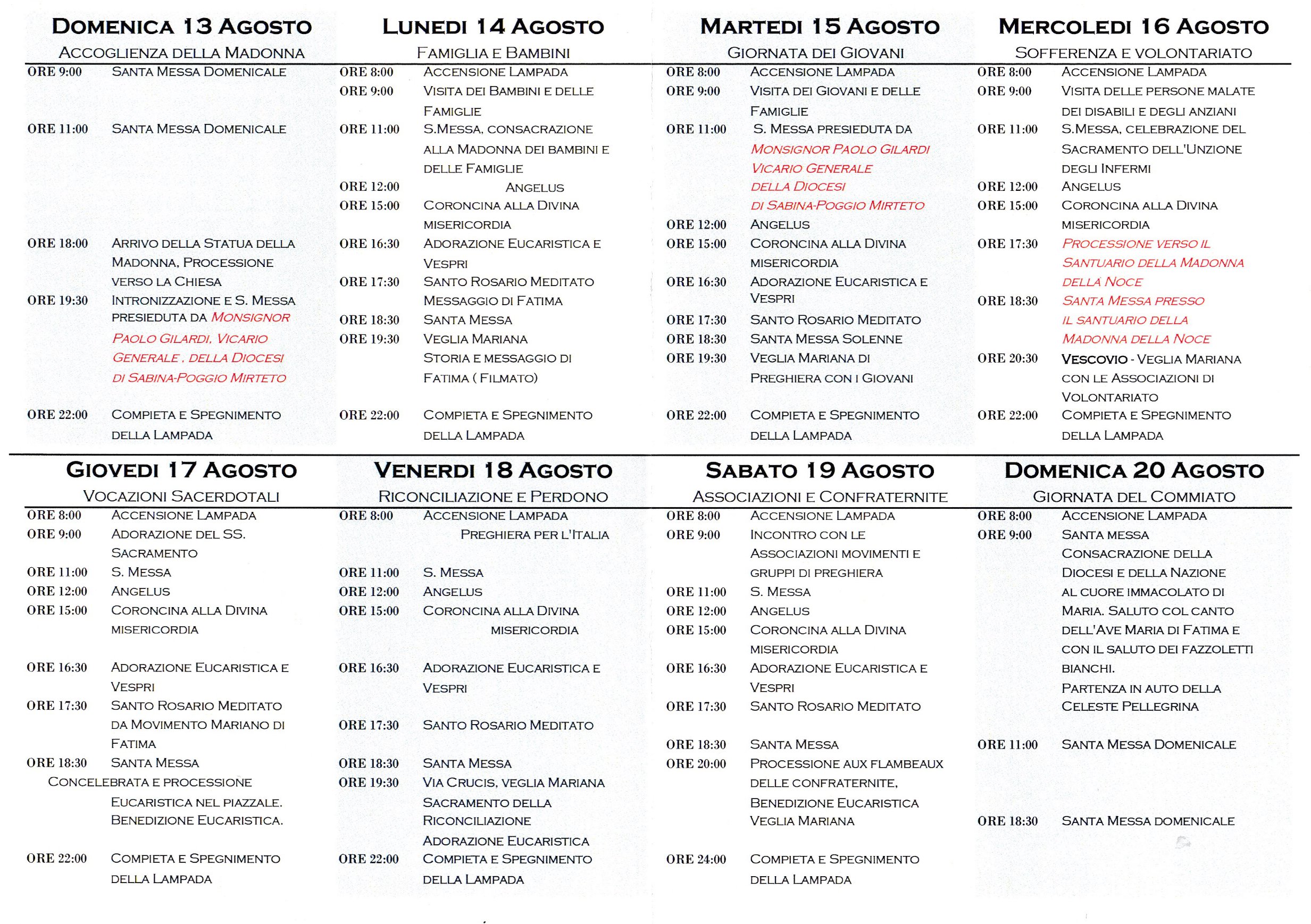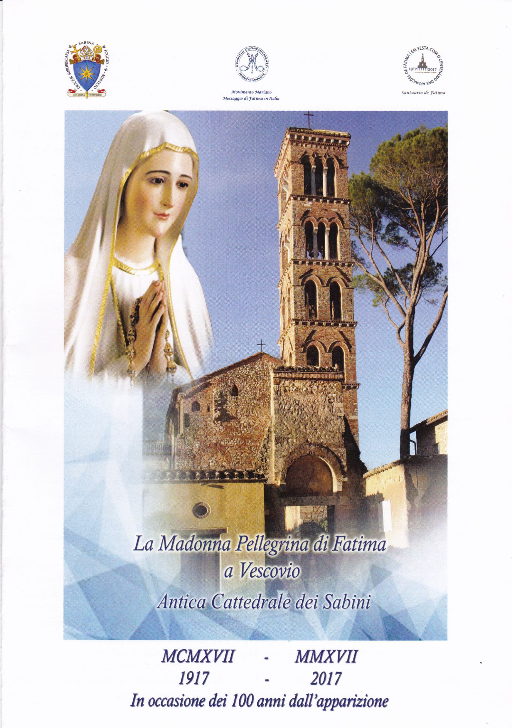 In occasione del 100esimo anniversario dell’Apparizione della Madonna di Fatima ai tre pastorelli, la statua della Celeste Pellegrina giunge nella nostra Diocesi presso il Santuario di Vescovio, dal 13 al 20 agosto. Qui di seguito la locandina e il programma delle celebrazioni.